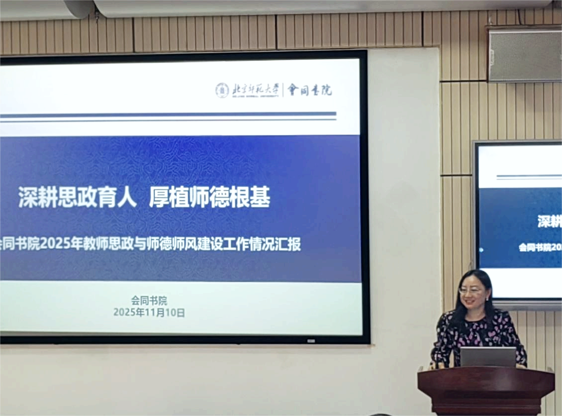 会同书院刘卉青老师在交流中提到,书院以精神引领为导向,组织师生深入学习张桂梅、黄文秀等时代楷模的感人事迹,系统领会习近平总书记给全国特岗教师代表回信的精神内涵。同时,她分享了2025年度教师思想政治工作和师德师风建设重点难点实践研究重点项目——《书院制模式下教师思政工作与学生思政工作协同机制研究——以北京师范大学会同书院为例》的推进成效。