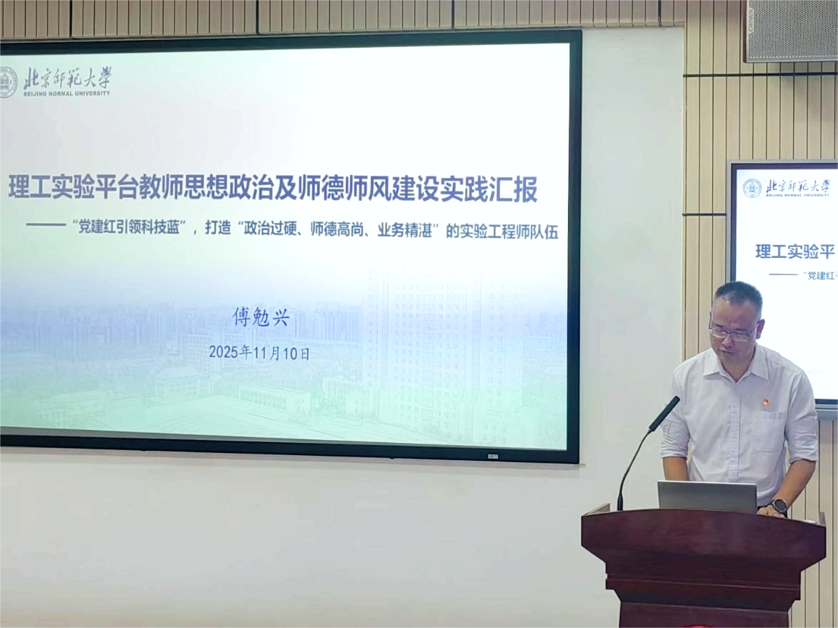 理工实验平台傅勉兴老师以“党建红引领科技蓝”为核心抓手,严明纪律底线,守住师德“红线”,阐述了打造政治过硬、师德高尚、业务精湛的实验工程师队伍的具体路径。部门针对性开展“守廉洁,过两节”主题教育,切实筑牢节日廉洁防线,推动廉洁意识真正内化为全体人员的师德自觉与行动自觉,构筑起风清气正的育人环境。